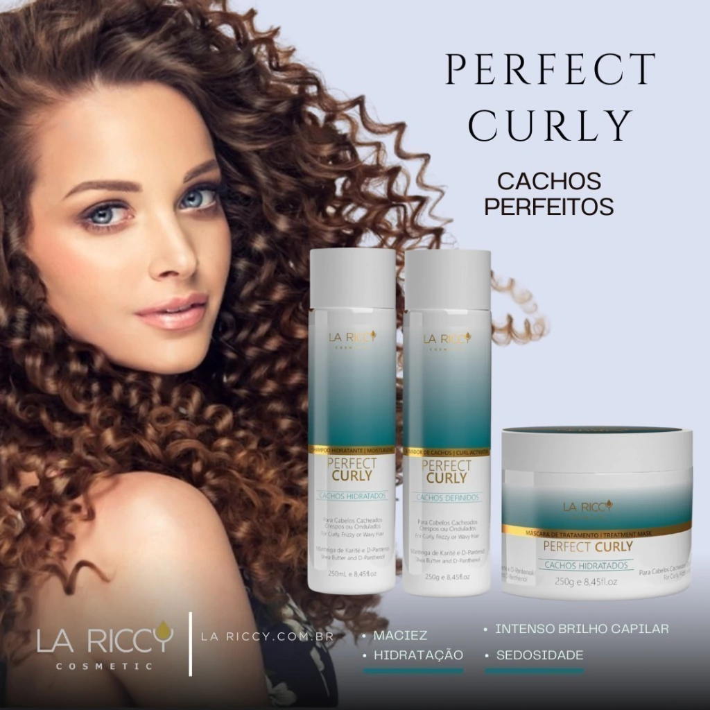 A Linha Perfect Curly foi desenvolvida para Cabelos Ondulados, Crespos e Cacheados. Sua fórmula enriquecida com Óleo de Semente de Uva, Sorbitol, Pantenol e Manteiga de Karité, proporciona aos Cabelos Hidratação, Maciez, Sedosidade e Intenso Brilho Capilar.
